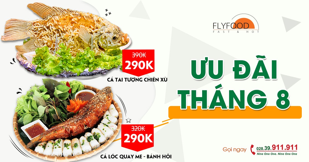 Cùng với đó là sứ mệnh hơn 8 năm hình thành và phát triển của mình, giờ đây FLYFOOD đã và đang từng ngày nỗ lực, tìm tòi để đưa những giá trị của ẩm thực truyền thống Việt đến với khách hàng. Mỗi món ăn chính là sự tâm huyết, tỉ mỉ và là một món quà của FLYFOOD dành cho khách hàng. Vì vậy, FLYFOOD tổ chức chương trình khuyến mãi cho các món ăn như sau: