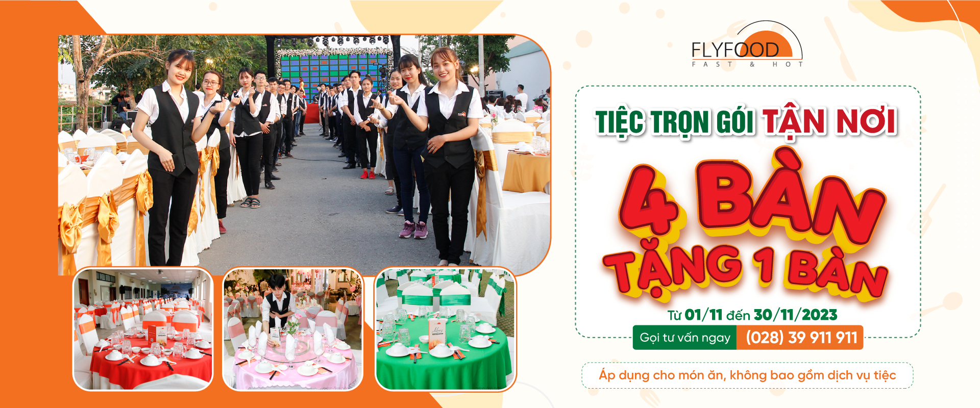 Chào đón tháng 11, FLYFOOD tung deal hot cho quý khách hàng khi đặt tiệc trọn gói tại FLYFOOD "4 BÀN TẶNG 1 BÀN".