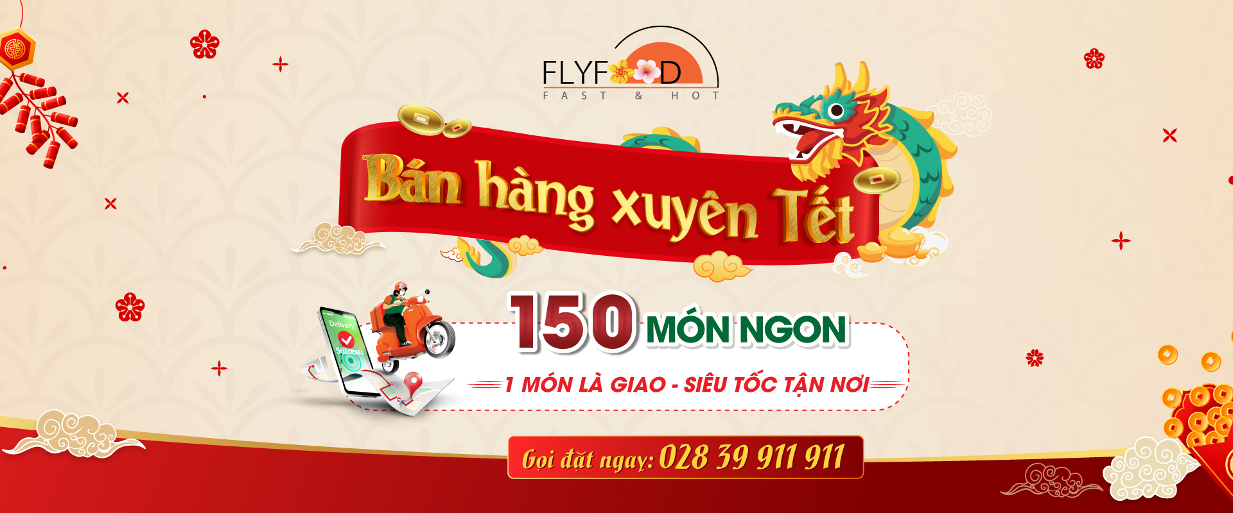 Nhằm phục vụ nhu cầu ăn uống của Quý Khách và gia đình trong dịp Tết Giáp Thìn, FLYFOOD xin được phục vụ Quý Khách xuyên suốt mùa Tết (chỉ giao món tận nơi).
